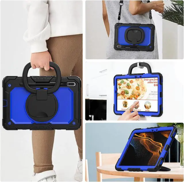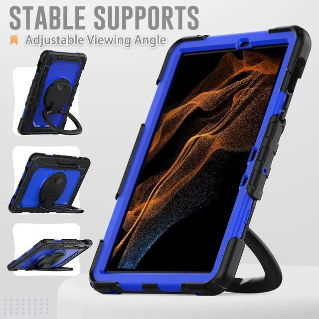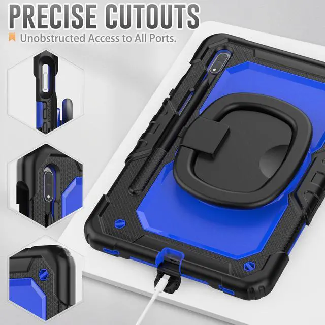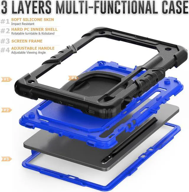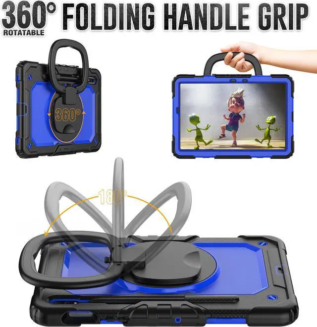 [360 Degree Rotating Kickstand & Hand Strap]: This shockproof case has a 360-degree turntable sturdy kickstand which can support your device from multiple perspectivesthe hand strap is also adjustable, securely and convenient using with one hand when in a meeting or classroom or outdoor activities.