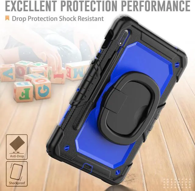 Shockproof + Screen Protector:This Tablet Case is designed with durable anti shock material, soft silicone, hard plastic shell and built-in screen protector. This sturdy case can keep your tablet safe from shock, drop, scratch or accidental damages in daily use.