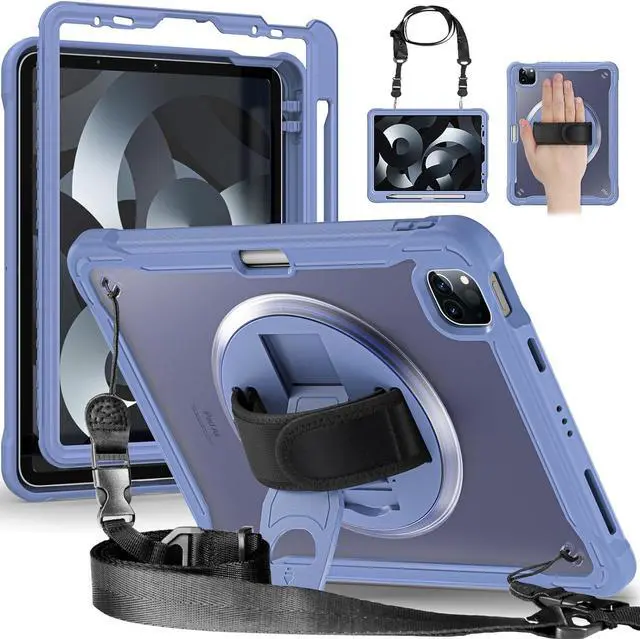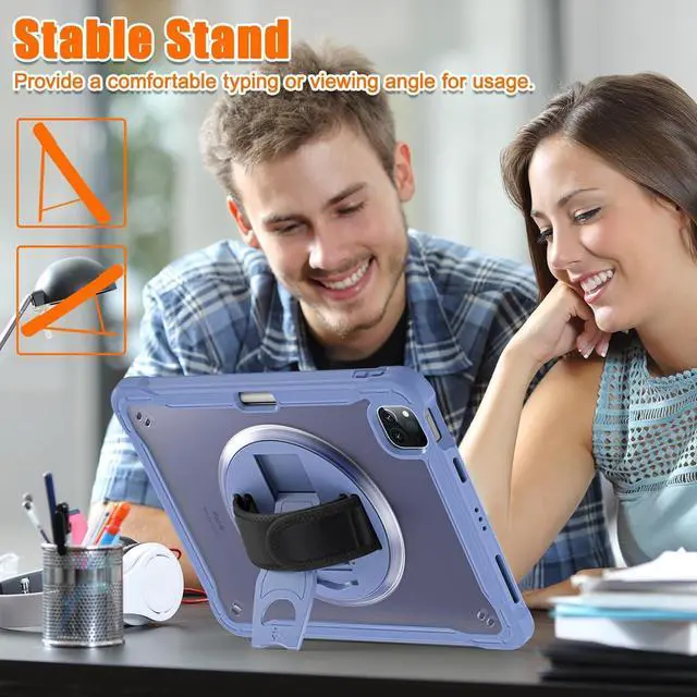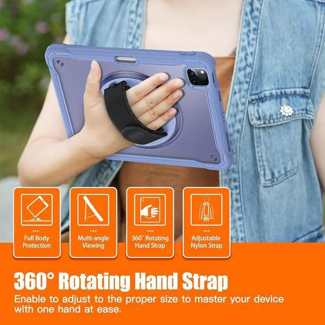 WITH STRAP FEATURES --- Portable shoulder strap can help you carry your iPad with a more secure way during hiking, traveling and car seat, other outdoor activities, let your hands free. Perfect for active people and outdoor gamers! Adjustable hand strap has friendly experience when you show the iPad to others. The handle strap is ideal for students, teachers. Really helpful for hold the iPad with one hand securely and working.