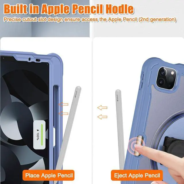 BUILT-IN PENCIL HOLDER --- Unique design supports Apple pencil (2nd Generation) wireless charging and magnetic attachment without taking off the case. Can quickly grab pencil or put it away. Don’t worry lost your Apple pencil any more!