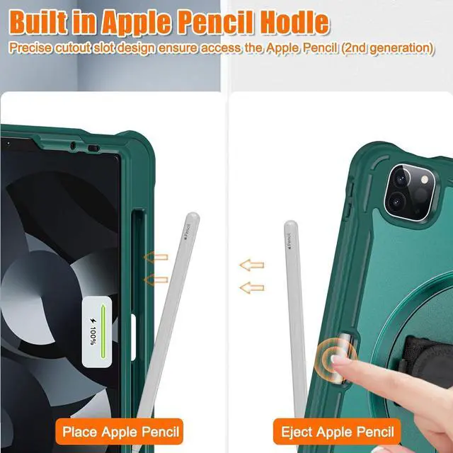 BUILT-IN PENCIL HOLDER --- Unique design supports Apple pencil (2nd Generation) wireless charging and magnetic attachment without taking off the case. Can quickly grab pencil or put it away. Don’t worry lost your Apple pencil any more!