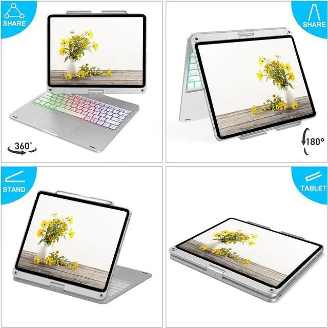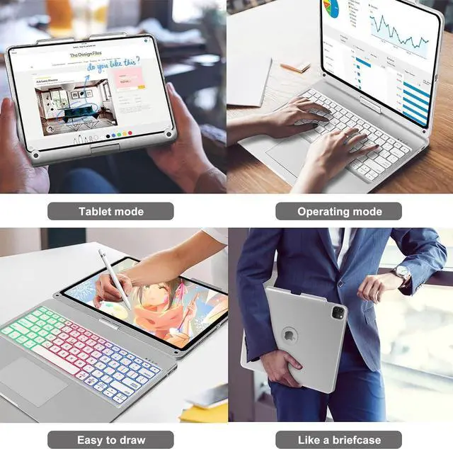 360° Rotation and 180° Flip --- The iPad Pro 12.9 case with keyboard supports 360°rotation and 180°flip, which allows you to view the screen in any position from multiple angles. [Multi-Touch] The iPad Pro 12.9 keyboard comes with an upgraded built-in touchpad, allows you to easily browse websites, edit documents and attend meetings without the use of a mouse, make your iPad as fast and fluid as a laptop.