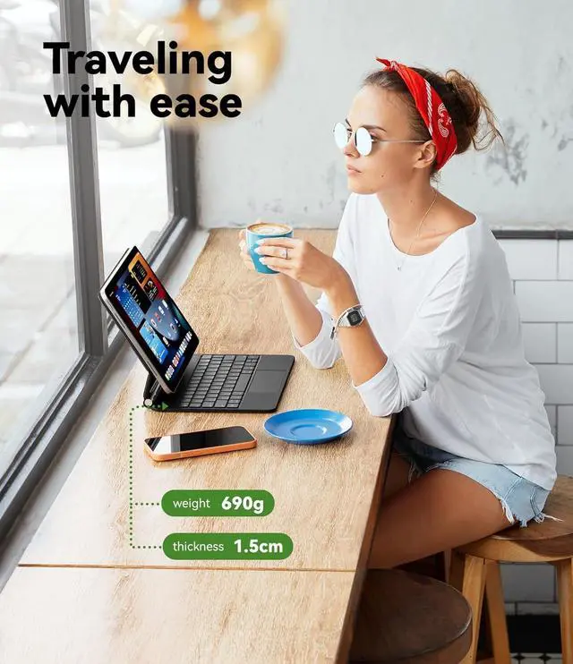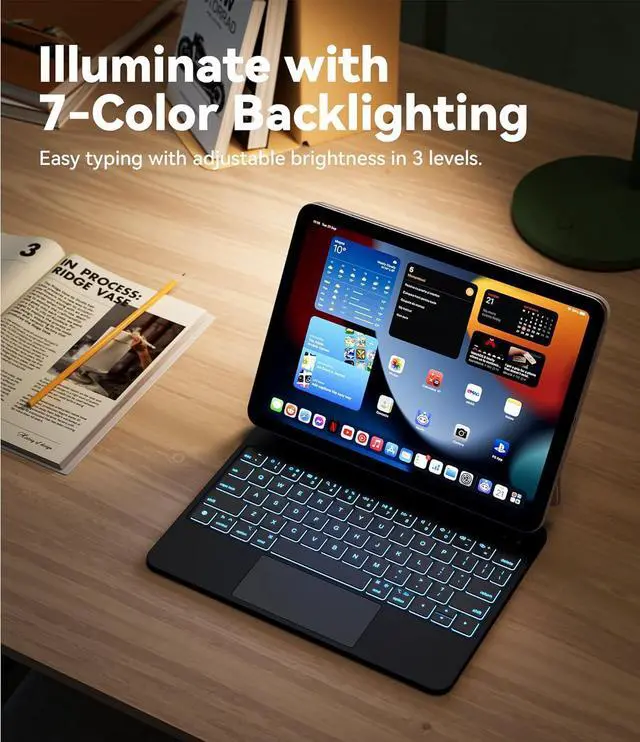 Typing with Scissor-Style Switches: Indulge in the pleasure of comfortable typing with the scissor-style switch keys. Revel in the swift and instant rebound of each keystroke, coupled with a comfortable 1 mm key travel. Immerse yourself in a sensitive, comfortable, and quiet typing journey on your iPad 2022, boosting your productivity effortlessly.