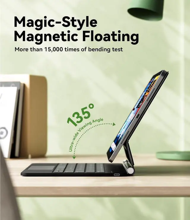 Magnetic Floating Stand: Transform your daily experience with the magic-like floating stand, a pinnacle of modern functionality. Boasting a robust magnetic matrix of 31 magnets, it provides a secure attachment with an impressive force of up to 2600GS. What sets it apart is its exceptional durability — rigorously tested to withstand 15,000 bending cycles. Immerse yourself in the convenience of a stable and effortlessly adjustable stand, backed by unparalleled strength and longevity.