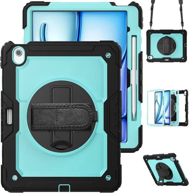 [SHOULDER & HAND STRAP]Elevate your outdoor iPad experience with the iPad Air 13-inch case featuring a shoulder strap,designed to free up hands and provide convenient outdoor carrying without the worry of accidental drops. Also features a hand strap that supports horizontal and vertical, ensuring a secure grip on the iPad during use to prevent accidental slips from hands.Stay connected and protected wherever you go with this versatile case designed for active lifestyles.