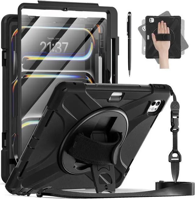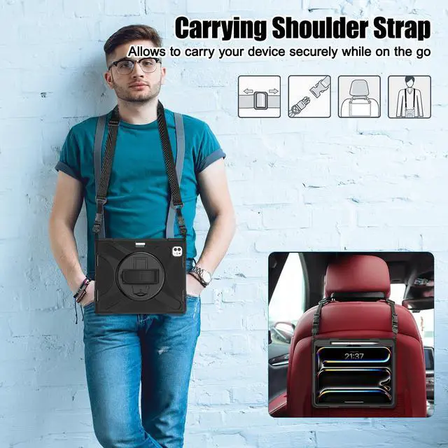 [SHOULDER & HAND STRAP] The iPad Pro 13 inch case with a detachable shoulder strap, allowing you to free up your hands outdoors and effortlessly carry your iPad wherever you go. Additionally, featuring an inner hand strap within the cover, it enables you to securely grip your device while using it, protecting against accidental slips that could lead to damage. Stay hands-free and secure with this versatile case for ultimate convenience and peace of mind.