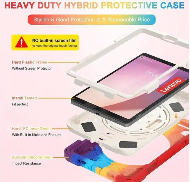 [ 360 Degree Protection ] With 3 layers design silicone outer frame and 2 pieces Combination of hard reinforced inner shell, This Lenovo Tab M8 4th Gen achieves better shock absorption effect. And the impact resistant bumpers design makes superior protection, prevent your tablet from any damage.