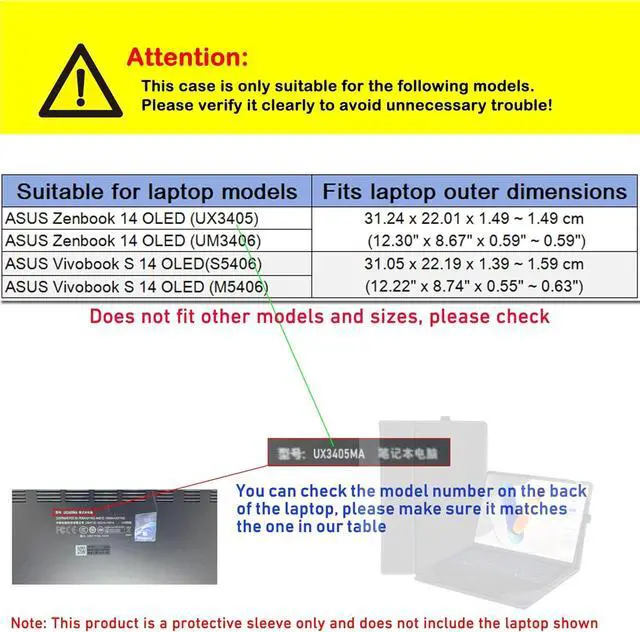 Fit Models: designed for 14 inch ASUS Zenbook 14 OLED UX3405 /UM3406 & for ASUS Vivobook S 14 OLED S5406 /M5406,not suitable for other models, please check.