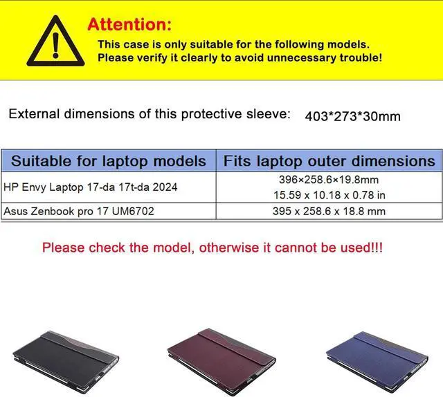 Before purchasing, please check the model number and size, this case only fits the following laptops: