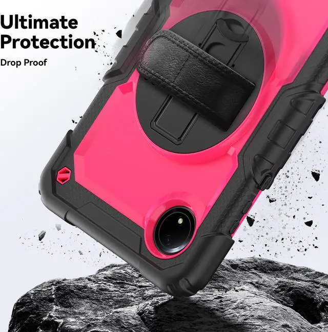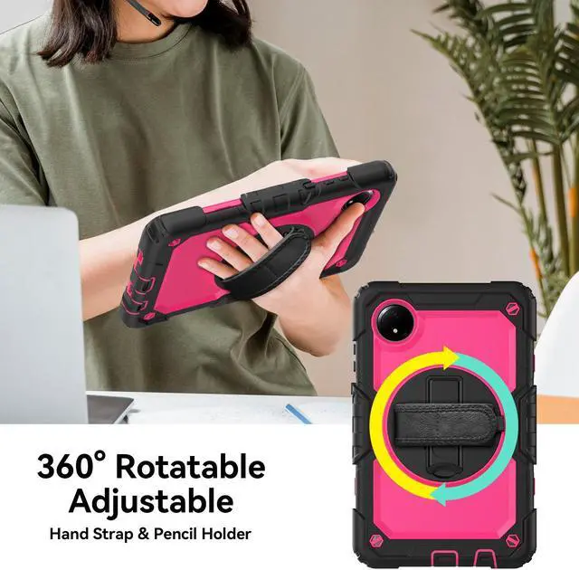 360° ROTATABLE STAND & HAND STRAP - 360° Rotatable foldable stand offers multiple angles for enjoying the most comfortable keyboard-typing, movie-viewing or draw. This sturdy kickstand can be folded when you don't need it. Ergonomically 360°Rotatable adjustable hand strap makes you hold or use your tablet easily in all directions, adjustable velcro hands strap allows big hand and small hand, perfect for kids and adults.
