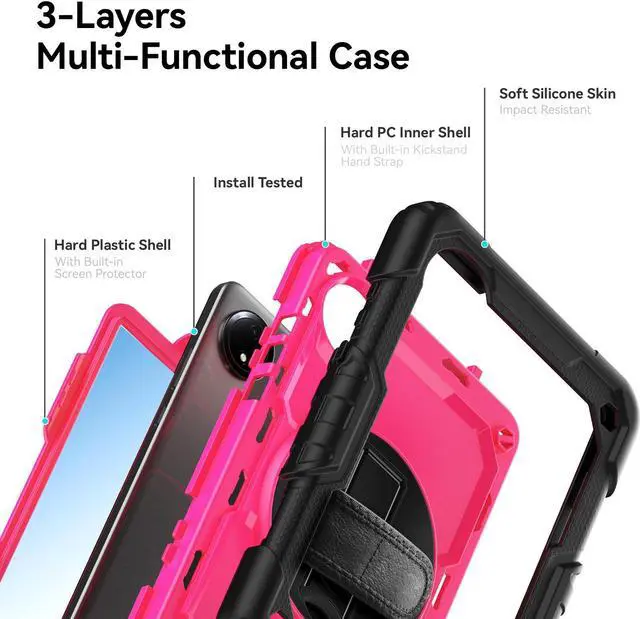 UPGRADED TRIPLE-LAYER FULL BODY PROTECTION - Advanced 3-in-1 construction, with 3 layers design silicone outer frame and 2 pieces Combination of hard reinforced inner shell. The Redmi Pad SE 8.7" case has passed the Drop Test, provides up to 7 ft drop protection, provides a full around protection against scratch, impacts and shock during daily use. All materials feature environmentally friendly and owns ROHS certification, no harms to women, men, kids, the old.