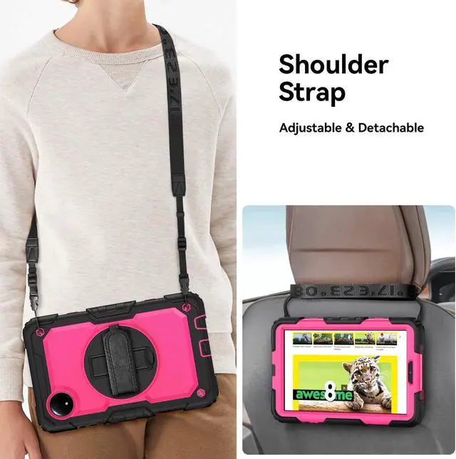 REMOVABLE & ADJUSTABLE SHOULDER STRAP - The portable shoulder strap helps you carry your tablet conveniently when you are at work, on a trip or outdoors. It can be attached to any two holes in the PC cover to carry your device vertically or horizontally like a messenger bag, or hang your Redmi Pad SE 8.7" in the kitchen, bedroom, car seat for convenient usage.