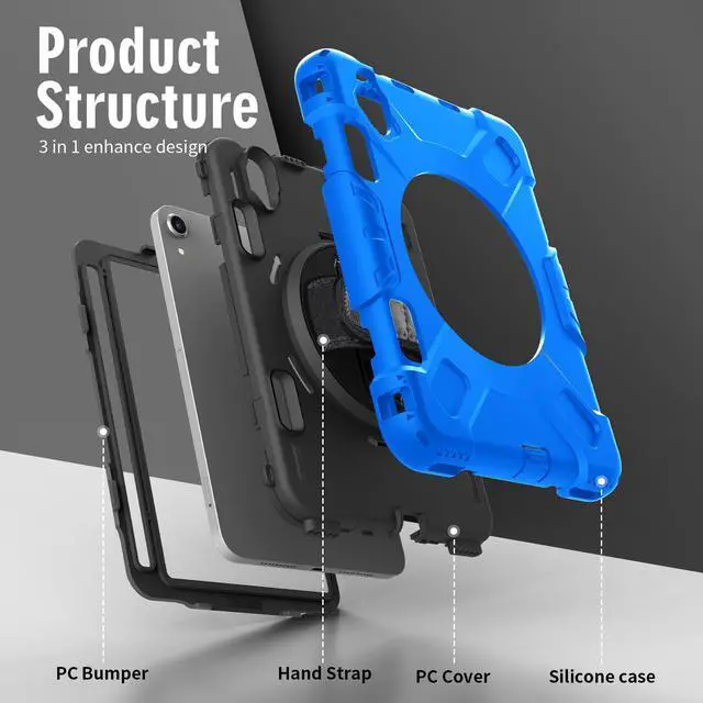 Full Body Protection: 3-Layered protection includes the front frame and hard PC back cover, and soft silicone outer shell. If your iPad is dropped or scratched, this sturdy protective case can provide full protection.