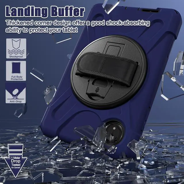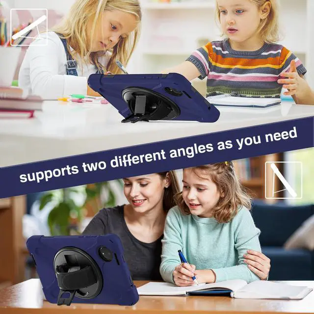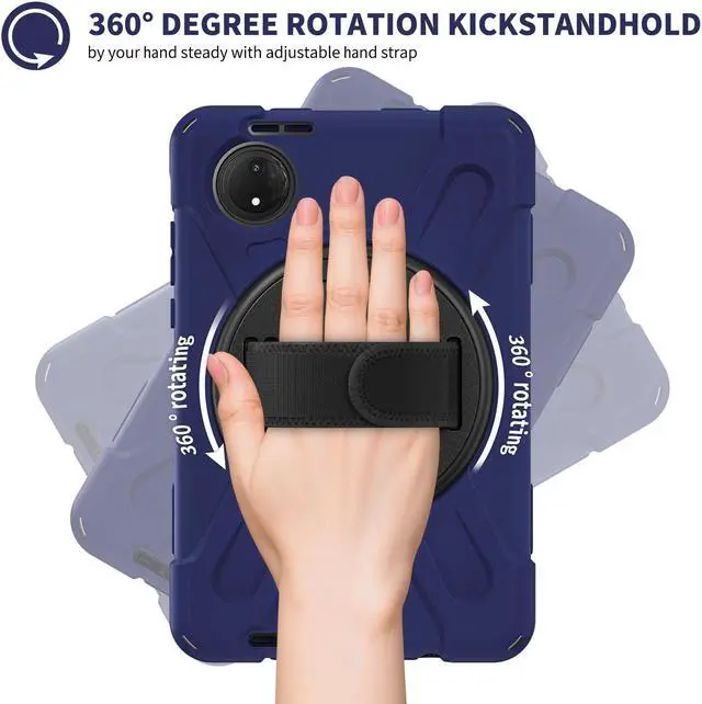 360° ROTATABLE STAND & HAND STRAP - 360° Rotatable foldable stand offers multiple angles for enjoying the most comfortable keyboard-typing, movie-viewing or draw. This sturdy kickstand can be folded when you don't need it. Ergonomically 360°Rotatable adjustable hand strap makes you hold or use your tablet easily in all directions, adjustable velcro hands strap allows big hand and small hand, perfect for kids and adults.