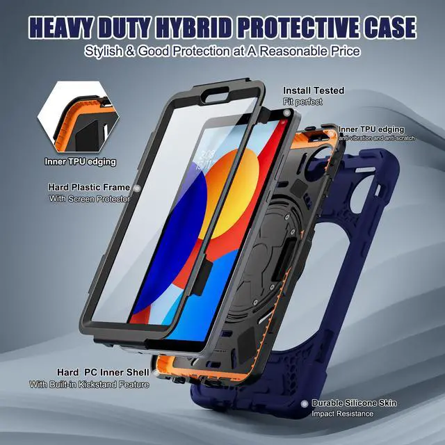UPGRADED TRIPLE-LAYER FULL BODY PROTECTION - Advanced 3-in-1 construction, with 3 layers design silicone outer frame and 2 pieces Combination of hard reinforced inner shell. The Redmi Pad SE 8.7" case has passed the Drop Test, provides up to 7 ft drop protection, provides a full around protection against scratch, impacts and shock during daily use. All materials feature environmentally friendly and owns ROHS certification, no harms to women, men, kids, the old.