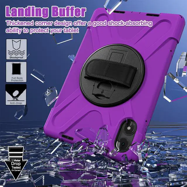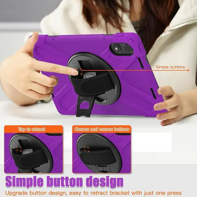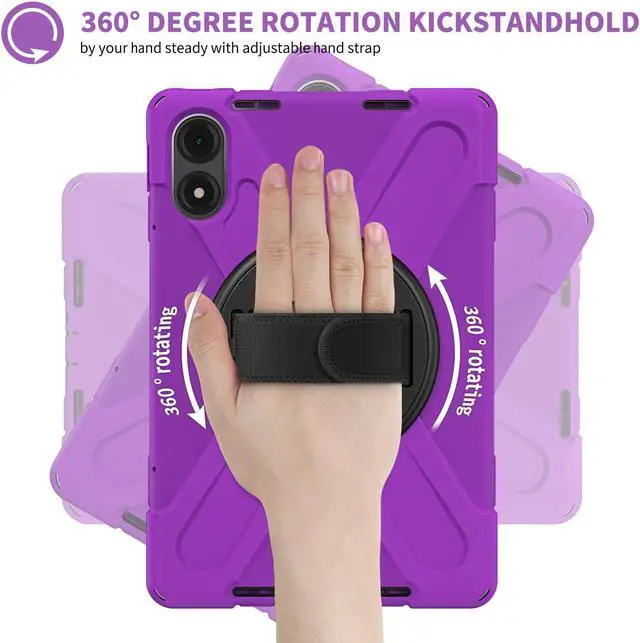 360° ROTATABLE STAND & HAND STRAP - 360° Rotatable foldable stand offers multiple angles for enjoying the most comfortable keyboard-typing, movie-viewing or draw. This sturdy kickstand can be folded when you don't need it. Ergonomically 360°Rotatable adjustable hand strap makes you hold or use your tablet easily in all directions, adjustable velcro hands strap allows big hand and small hand, perfect for kids and adults.