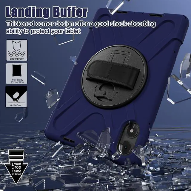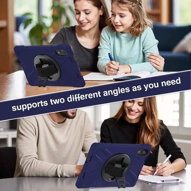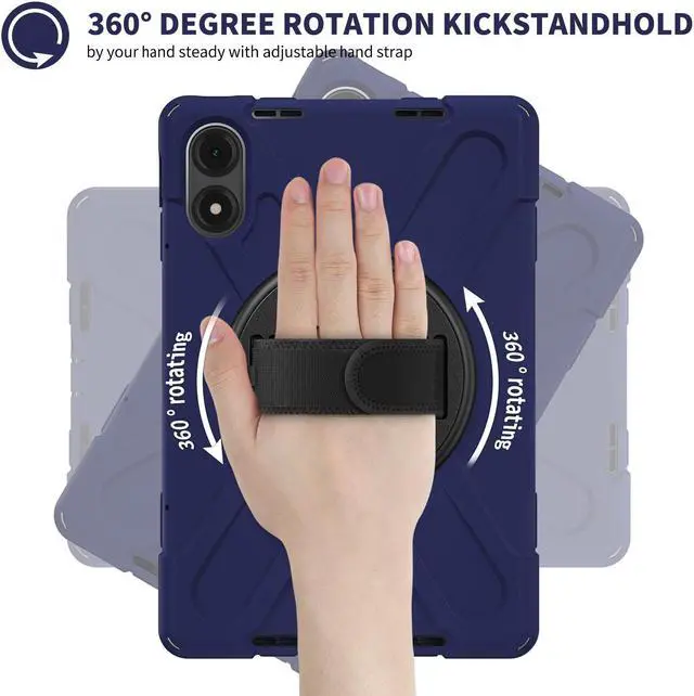 360° ROTATABLE STAND & HAND STRAP - 360° Rotatable foldable stand offers multiple angles for enjoying the most comfortable keyboard-typing, movie-viewing or draw. This sturdy kickstand can be folded when you don't need it. Ergonomically 360°Rotatable adjustable hand strap makes you hold or use your tablet easily in all directions, adjustable velcro hands strap allows big hand and small hand, perfect for kids and adults.