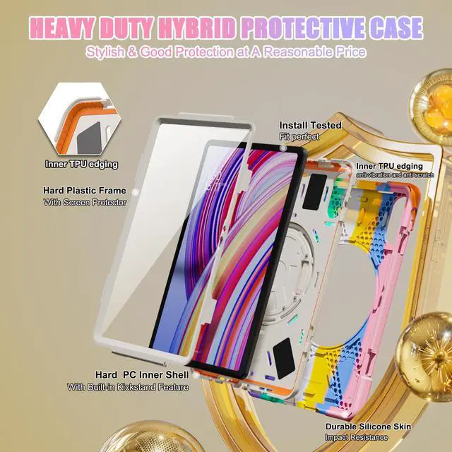 UPGRADED TRIPLE-LAYER FULL BODY PROTECTION - Advanced 3-in-1 construction, with 3 layers design silicone outer frame and 2 pieces Combination of hard reinforced inner shell. The Redmi Pad Pro 12.1" case has passed the Drop Test, provides up to 7 ft drop protection, provides a full around protection against scratch, impacts and shock during daily use. All materials feature environmentally friendly and owns ROHS certification, no harms to women, men, kids, the old.