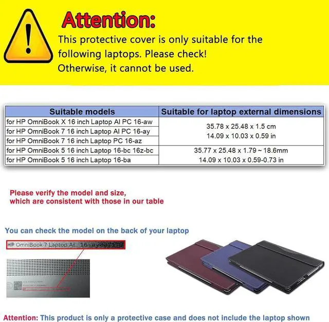 Fit models: Cover only for HP OmniBook X 16 inch 16-aw & for HP OmniBook 7 16-ay /16-az & for HP OmniBook 5 16 inch Laptop 16-ba /16-bc /16z-bc,does not fit other models, please complete the check.