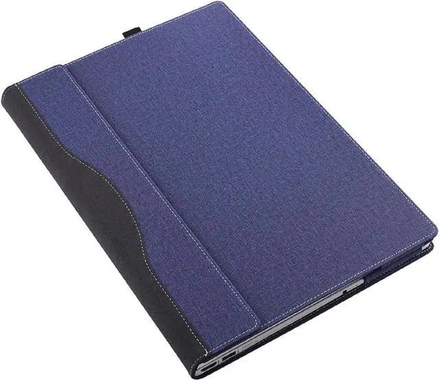 Material: The exterior is made of high-quality PU leather [resembling canvas texture], which is fingerprint resistant, breathable and non slip. The inner lining is made of ultrafine fibers to prevent scratches on the laptop.