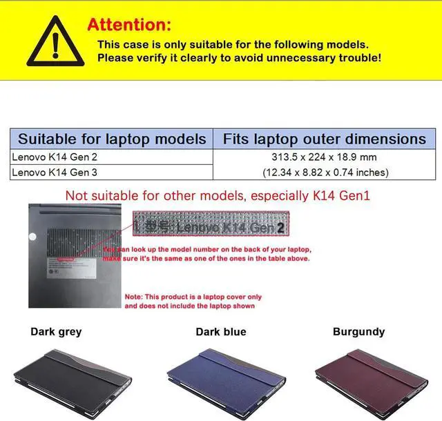 Fit models:Only for 14 inch Lenovo K14 Gen 2 & for Lenovo K14 Gen 3 ,not suitable for other models, Especially not suitable for K14 Gen1,please do check.
