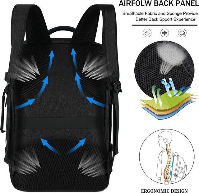 DURABLE & ANTI-TEAR MATERIAL- Laptop backpack is made of high-quality waterproof anti-wrinkle polyester fabric, sturdy shoulder strap and comfortable airflow black panel, features a double-sided smooth explosion-proof YKY zipper and reinforced stitching for its durability. And with its durable material, this 17 inch laptop backpack is easy to clean and diffcult to break or tear. This travel backpack is built for last, speacially designed for airplane traveller