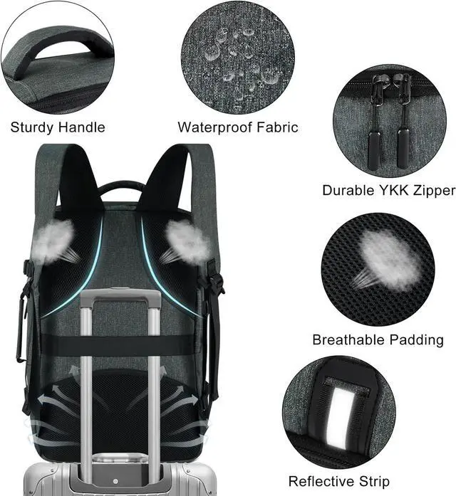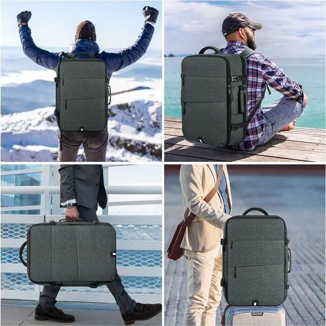Multiple Carrying WaysThe carry on travel backpack has sturdy handle on the top and side, making it switch freely between backpack and suitcase. A smart luggage belt on the back, can be slid over your luggage tube for easy carrying, helping release your hands and shoulder. Practical design provides you with a more flexible carrying experience.