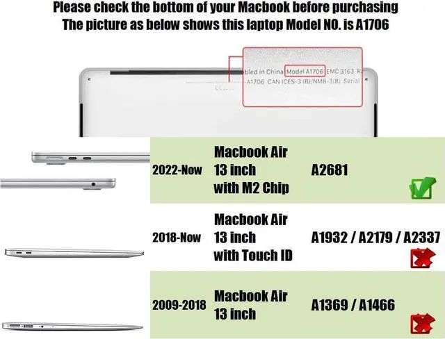 Only compatible with MacBook Air 13.6 -inch Model A2681 (2022 Released Version) with M2 Chip. Please double check your laptop's model number "A1xxx" on the bottom of the laptop to determine the compatibility.