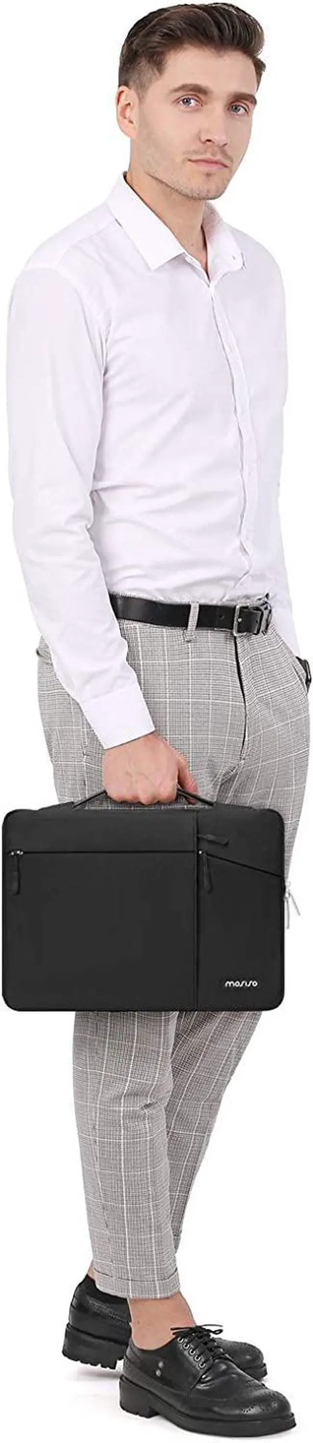 The protective laptop sleeve with handle & pockets carrying bag is made of polyester material, protect your laptop against accidental spills. Slim and lightweight, does not bulk your device up and can easily slide into your briefcase, backpack or other bag. Ideal for business, school or travel.