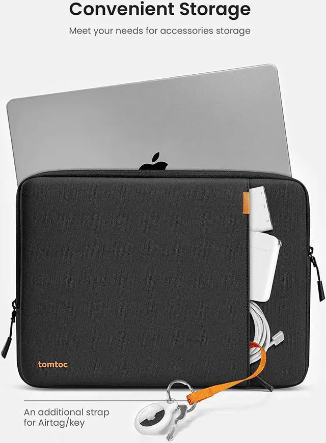 Convenient Storage: Laptop is never the only thing you need to take. Maybe your charger, cable, mouse, external backup drive, etc. The extra front pocket makes go with just the case possible. And an additional strap is designed here for your Airtag or key