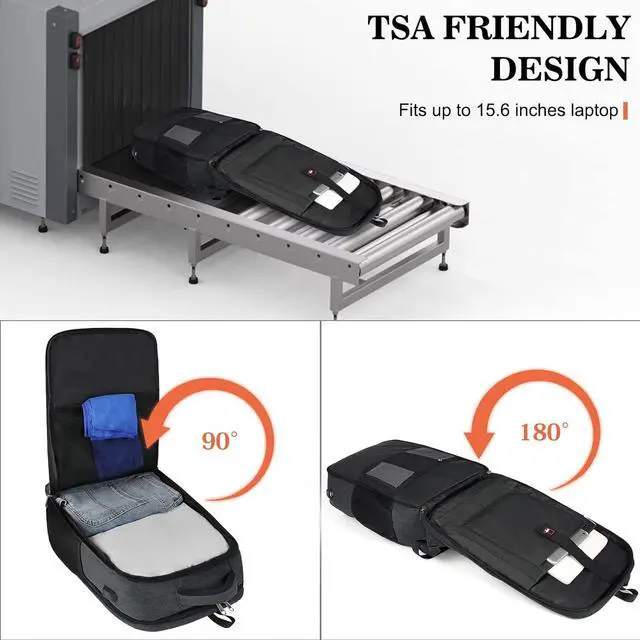 TSA APPROVED & USB CHARGING PORTThis laptop compartment can be opened up to 180° for quickly through airport security, exclusively designed for AIRPLANE TRAVEL. External USB port with built-in charging cable great for charging your cell phone while walking.