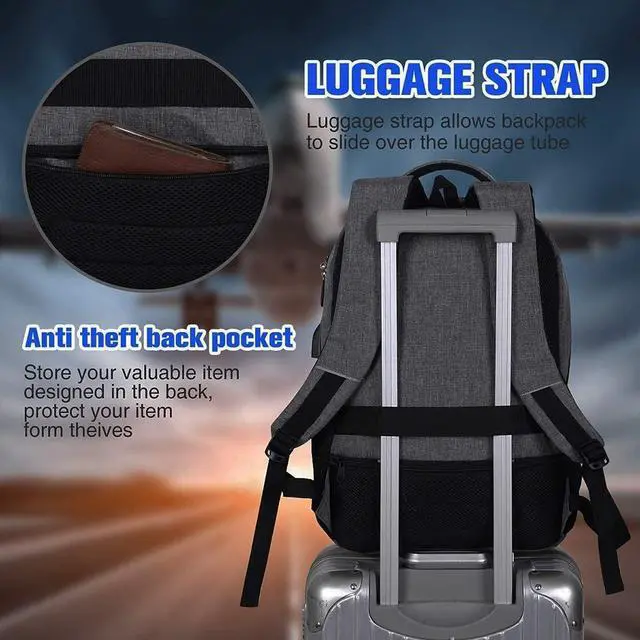 Safe Travel Backpack: A luggage strap allows backpack fit on luggage/suitcase, slide over the luggage upright handle tube for easier carrying. With a hidden anti theft pocket on the back protect your valuable items