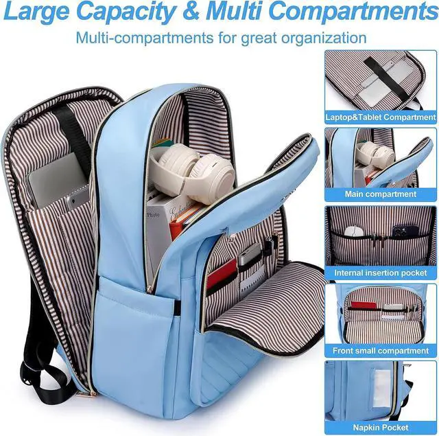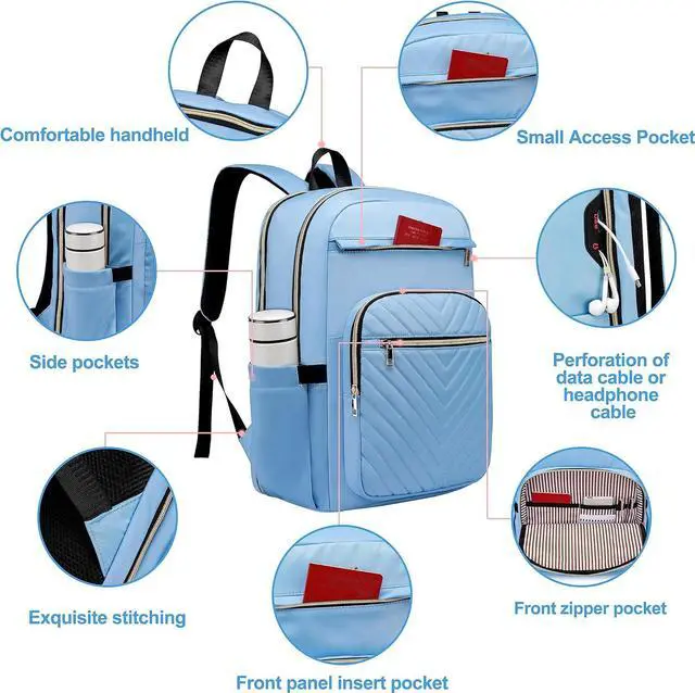 This laptop backpack is made of water-resistant, sturdy, and tear-resistant Oxford material. Stylish and fashion design, roomy for everything you need, a good choice for daily commute, business travel, college rucksack bookbag, backpack purse for women, work backpack, carry-on bag etc.