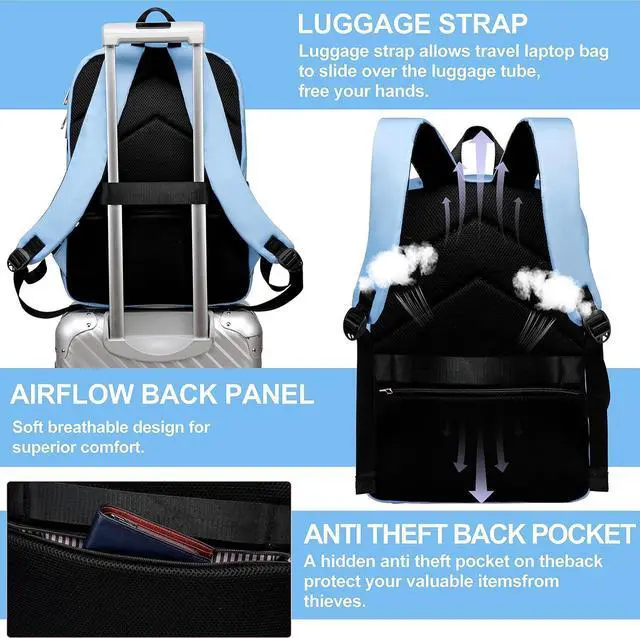 Convenient for Travel: An anti-theft pocket located on the back keeps your passport, wallet, phone, and other valuable items safe and handy. A luggage strap allows backpack fit on luggage/suitcase, making your journey and travelling more convenient wherever you go.