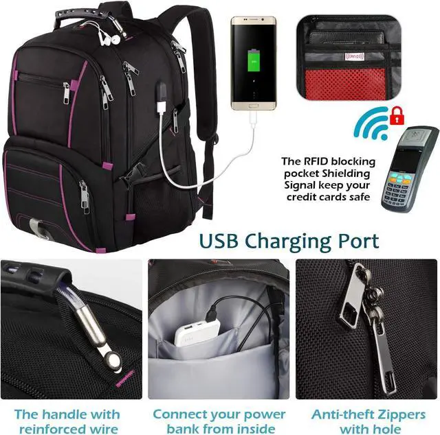 PREMIUM MATERIAL & SOLID: Made of water resistant & durable Polyester Fabric, two-way metal zippers across the backpack are convenient to operation on whichever side you prefer. Ensures a secure/long-lasting usage everyday/weekend. Serve you well as professional office work daybag, USB charging bagpack, college big student bookbag for adults. A good travel companion when you outside with your computer. Great gifts to everyone you love on Thanksgiving Day, Christams Day