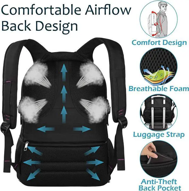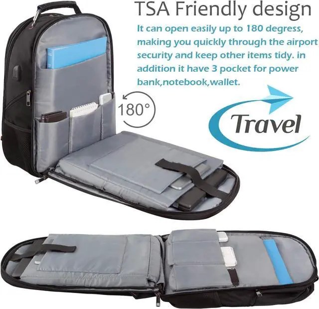 TSA FRIENDLY & FUNCTIONAL: TSA-Friendly feature exclusive designed, makes it getting through airport security quickly and easily by lying the laptop flat without removing it from the bag. A luggage strap allows backpack fit on luggage/suitcase, slide over the luggage upright handle tube for easier carrying. Well made for day trip. Ideal for daily use work, shopping, weekend getaway, occasional travel, hiking, camping, overnight trip