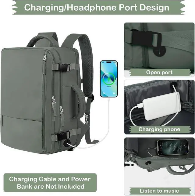 [Multifunctional Opened Port for Charging & Listening]: The versatile port of the travel backpack side can provide convenient access to charge your phone or you can use it as a headphone port to listen to your premium music, free