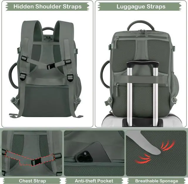 [Durable & Multipurpose]: All the zippers of this carry-on backpack are durable and smooth. The shoulder straps can be hidden, so you can carry it like a briefcase by using the side handle. There is also a luggage strap to help you fix it on the suitcase.