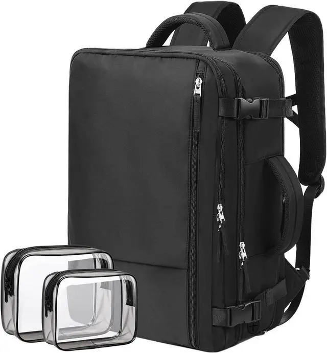 Hanples Extra Large Travel Backpack for Women as Person Item Flight Approved, 40L Carry On Backpack, 17.3 Inch Laptop Waterproof Backpack, Hiking, Casual Bag Backpack(Black)