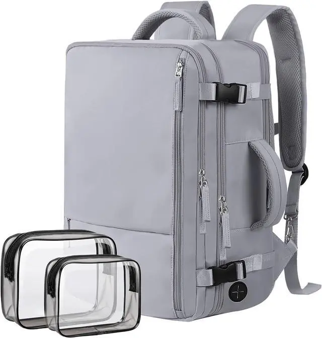 Hanples Travel Backpack for Women as Person Item Flight Approved, Large Carry On Backpack, 17.3 Inch Laptop Backpack, Waterproof Backpack, Hiking Backpack, Casual Bag (Gray)