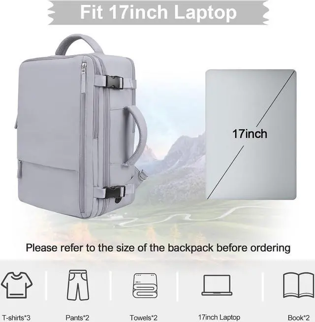 • [Expandable Capacity & Suitable for 17.3 inch Laptop]: This laptop backpack has a laptop compartment with good thick cushion, which can protect your laptop well and suit for 17.3 inch laptops as well. This travel backpack has lots of space and pockets for what you need it for, and the capacity is 35L. A good companion for 3-5 days travel. (Backpack Net Weight: 2Lb)