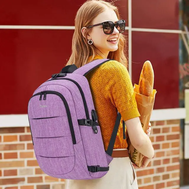 Tzowla Business Laptop Backpack Water Resistant Anti-Theft College Backpack with USB Charging Port and Lock 15.6 Inch Computer Backpacks for Women and Men Girls, Casual Hiking Travel Daypack(Purple)