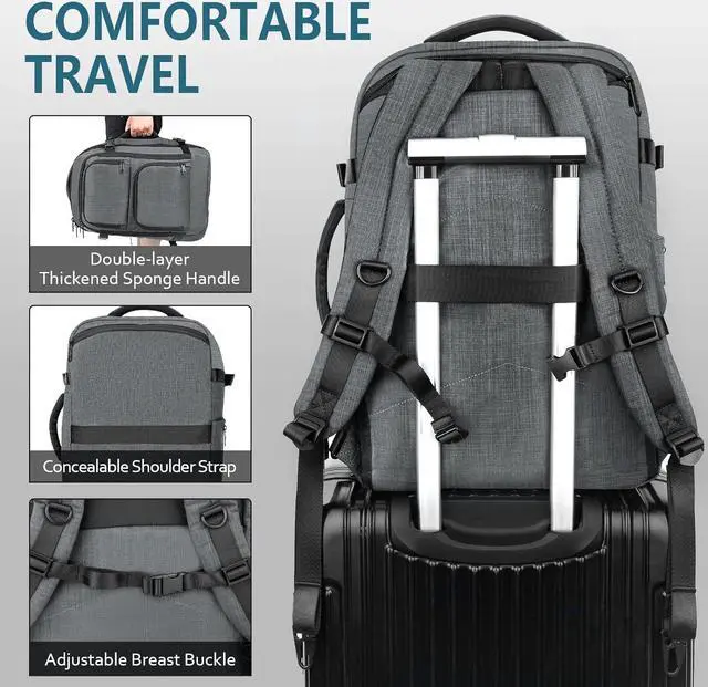 Convenient for travel: hidden shoulder straps make the backpack easy to carry or lift, convenient for carrying; luggage pull rod strap for easy travel; main handle and side handle design for lifting the backpack from multiple angles.