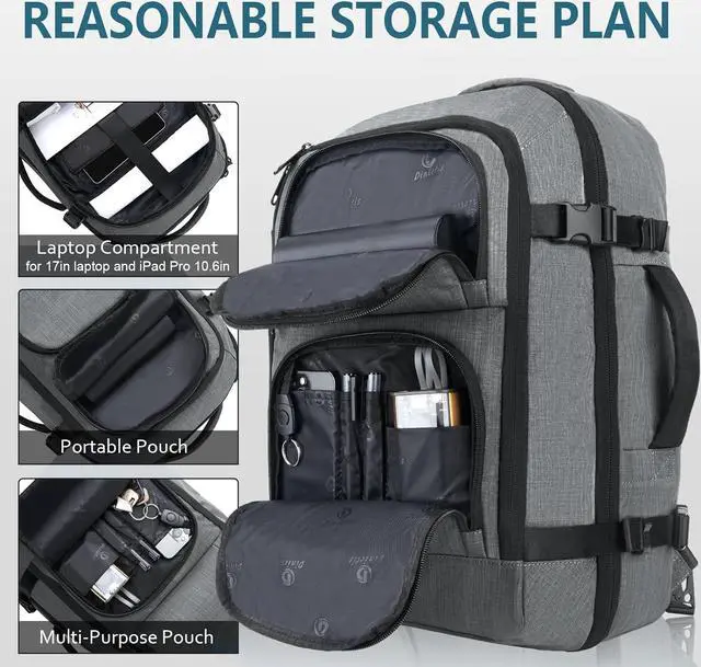 Easy to organize: computer compartment with protective foam pad can accommodate up to a 17-inch laptop, with many compartments inside to place luggage in an orderly manner; the main compartment has a wet bag, which can be used to store travel toiletries or some waterproof items.