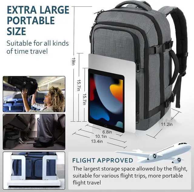 size: 19.6 * 13.8 * 9.8 inches, capacity: 40 liters; suitable for flying the allowed maximum size, like a convenient carry-on backpack; suitable for business travel, everyday backpack, international travel, weekend trips, camping, hiking, overnight travel.
