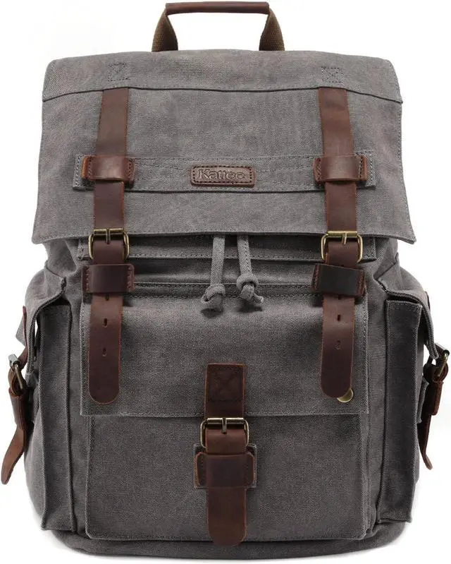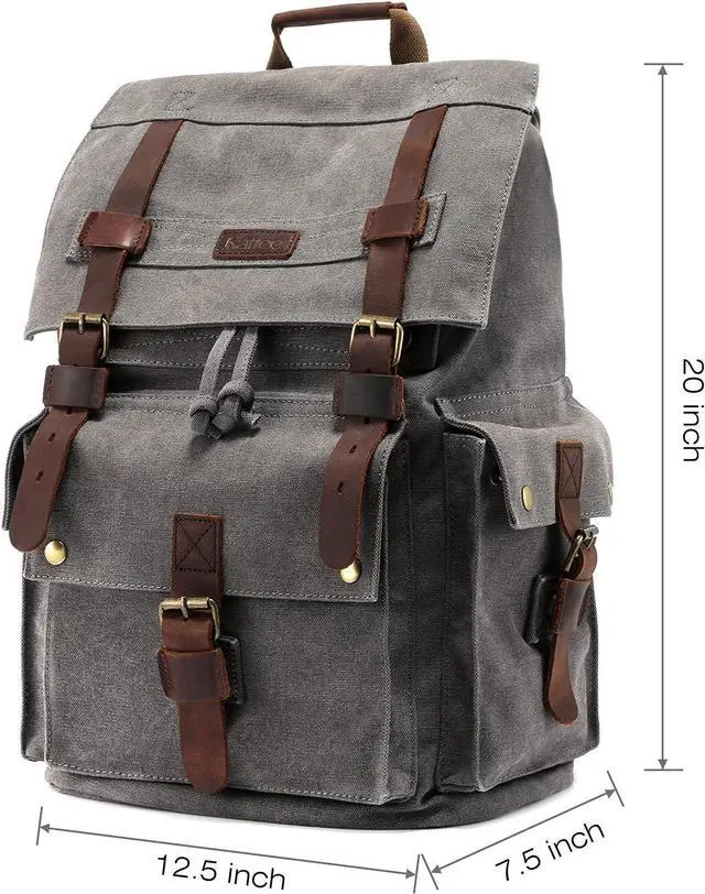 DURABLE & WEAR-RESISTANCE: Kattee mens leather canvas backpack made of weave heavy-duty plain-woven fabric and decorative buckles that feature high-efficiency magnetic button closures. The rucksack backpack is made of a combination of canvas and leather, providing both durability and style.