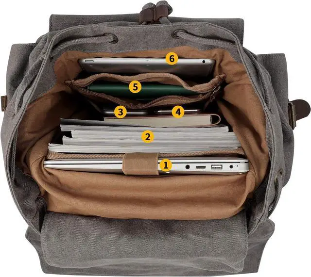 LARGE CAPACITY: This canvas backpack for men is perfect for those who need to carry a lot of items on a daily basis. Its large capacity provides ample space for storing portable textbooks, A4 magazines, and other essentials. The interior includes a roomy 15-inch main pocket, as well as a pocket that can fit a 17-inch laptop