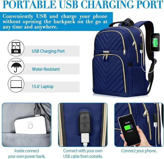 USB Charging Port: With an external USB charging port and built-in a charging cable inside, and there is a special pocket inside the laptop backpack to place the power bank (Note: power bank is not included), providing you with a more convenient way to use your mobile phone while walking or traveling. Laptop Backpack makes your trip and travel more convenient wherever you go.