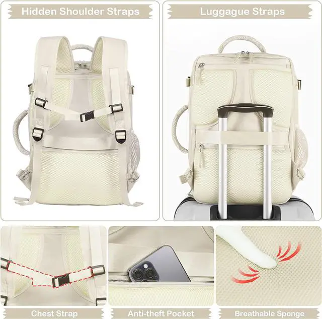 [Durable & Multipurpose]: All the zippers of this carry-on backpack are durable and smooth. The shoulder straps can be hidden, so you can carry it like a briefcase by using the side handle. There is also a luggage strap to help you fix it on the suitcase.