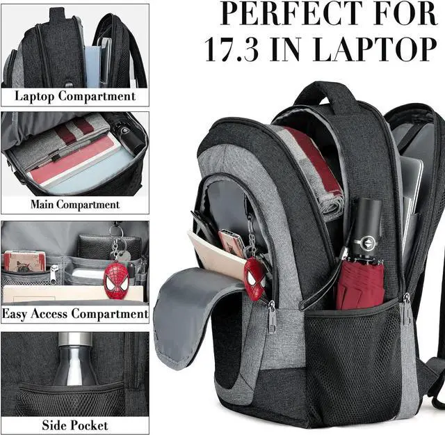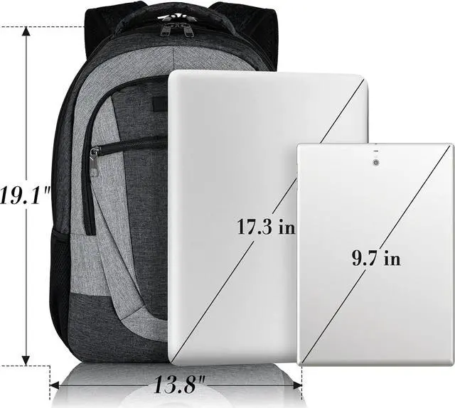 • STORAGE SPACE&POCKETS: The main pocket of school backpack is equipped with a separate laptop soft compartment hold 17-inch laptops and 16-inch, 15-inch, 14-inch and 13-inch Macbooks/notebooks. The soft sponge design will protect your laptop. Outside the compartment, a more spacious packing compartment roomy hold an iPad, mouse, charger, binder, books, clothes, etc. Mesh pockets are located on the sides of water bottles and compact umbrellas to keep your belongings organized and easier to find